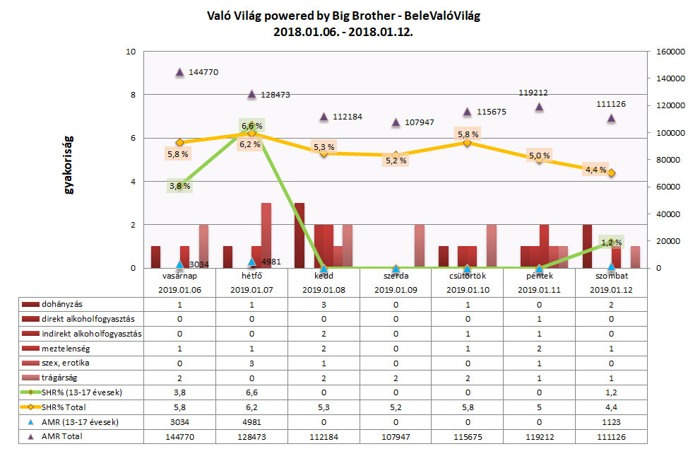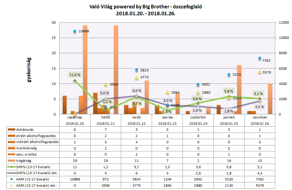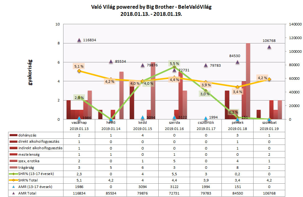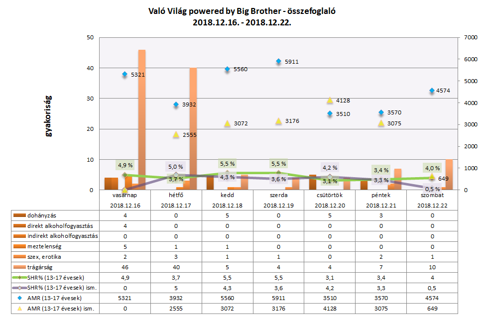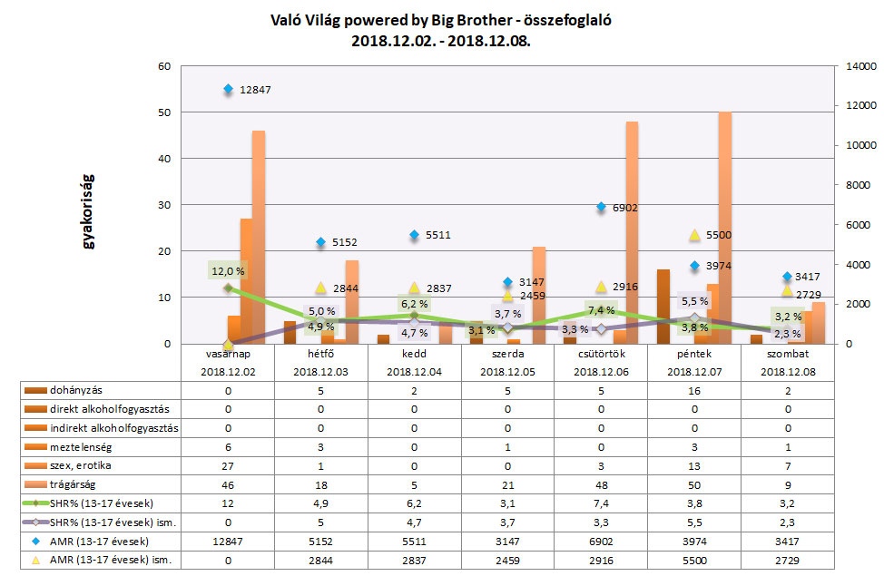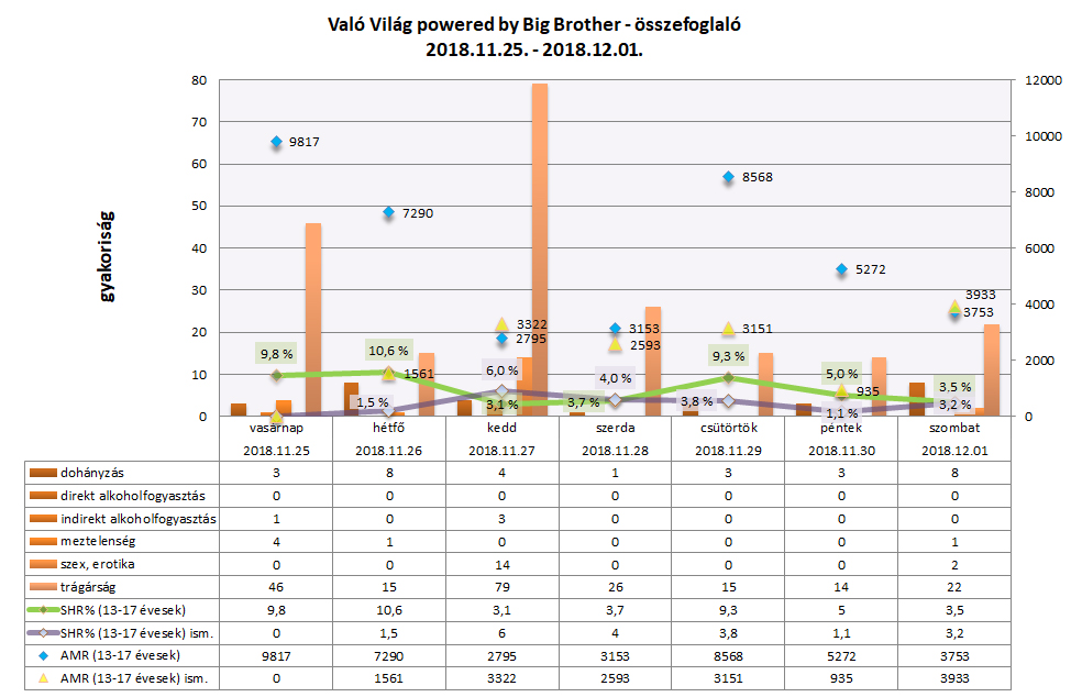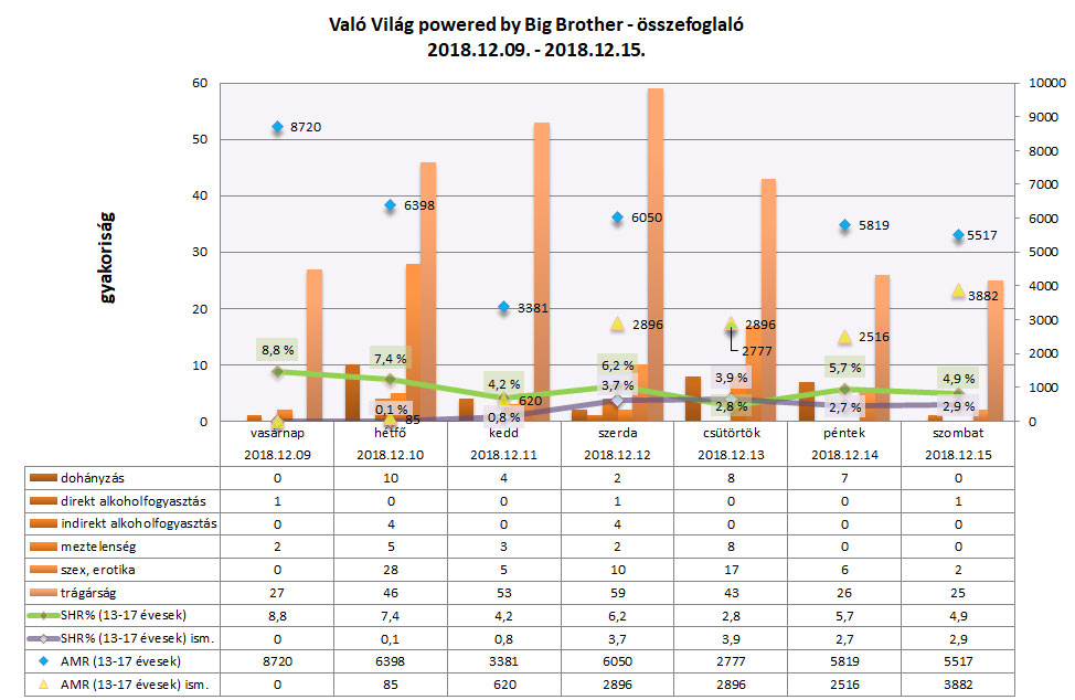 Az RTL II csatornán 2018. november 4-én elindult a Való Világ kilencedik – legfrissebb – szériája. A televíziós valóságshow-kat övező érdeklődésre tekintettel a korábbi évadokhoz hasonlóan a Nemzeti Média- és Hírközlési Hatóság idén is heti rendszerességgel vizsgálja a Való Világ powered by Big Brother c. program 22 óra utáni kiadásait, illetve a délutáni ismétléseit, valamint figyelemmel kíséri a BeleValóVilág powered by Big Brother c. éjjeli kísérőműsorban megjelenő tartalmakat. Ezzel párhuzamosan, a korábbi gyakorlatnak megfelelően, a megszokott „barométer” módszertana szerint zajlik az aggályos tartalmak (szexualitás, szexuális kontextusban megjelenő meztelenség, trágár kifejezések, dohányzás, alkoholfogyasztás) megfigyelése, amelynek eredményeit heti periodicitással dolgozza fel és publikálja.