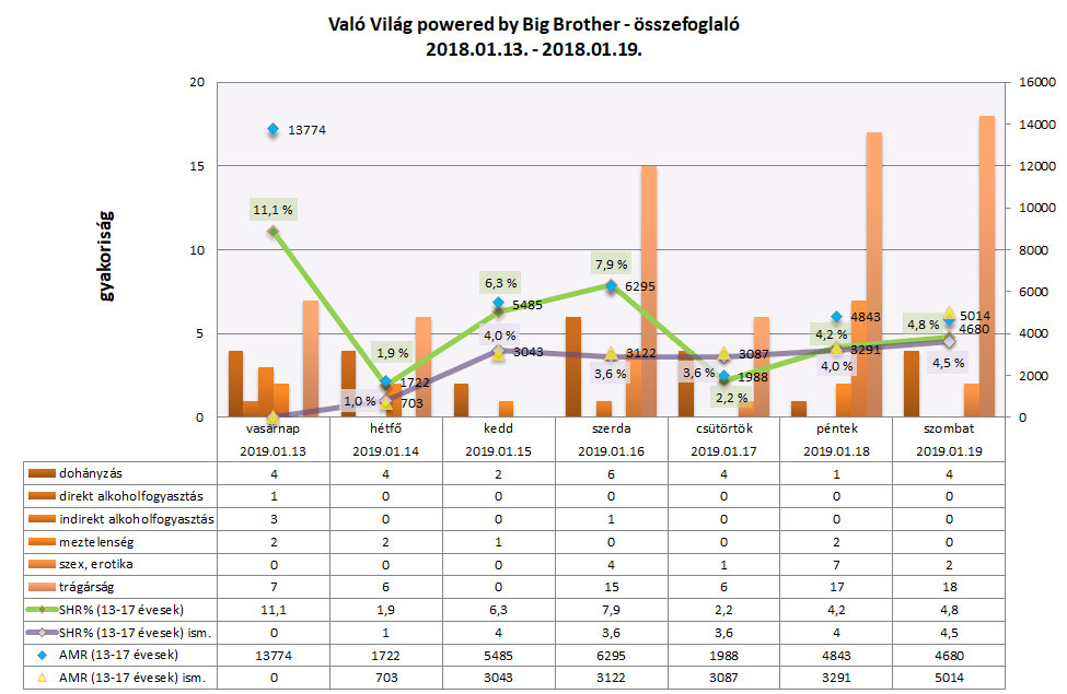 Az így létrehozott barométer fő feladata, hogy a hatósági vizsgálatokon túlmutató módszerekkel megragadja, valamint szemléltesse a műsorban megjelenő aggályos tartalmak és ezek nézettségi trendekkel összekötött változásait. A programban előforduló káros motívumokat kvantitatív módszerekkel elemzi, amelyek lehetőséget adnak az időbeli változások kimutatására is. Az adatszolgáltatás 2018. november 4-től követi a Való Világ powered by Big Brother szériájának műsorait, amely kizárólag az esti kiadásokra fókuszál.