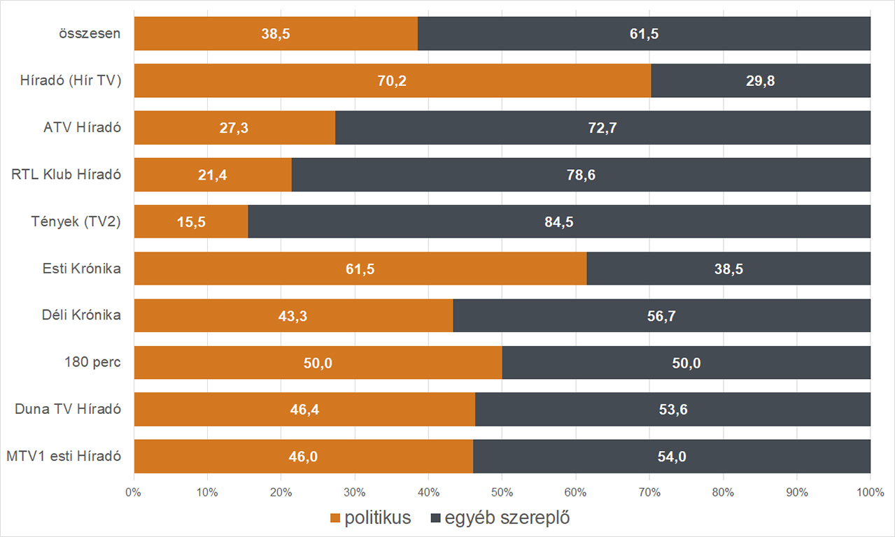 A politikusok szerepléseinek aránya más szereplőkével összevetve a hírműsorokban