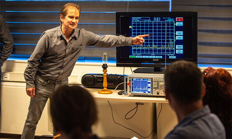 A mérőszolgálati tevékenységről szóló áttekintő előadás ismereteit rögtön a gyakorlatban is alkalmazhatták a látogatók, amikor megmérték, mit mutatnak a műszerek a mikrohullámú sütők, az antennák vagy mobiltelefonok közelében.