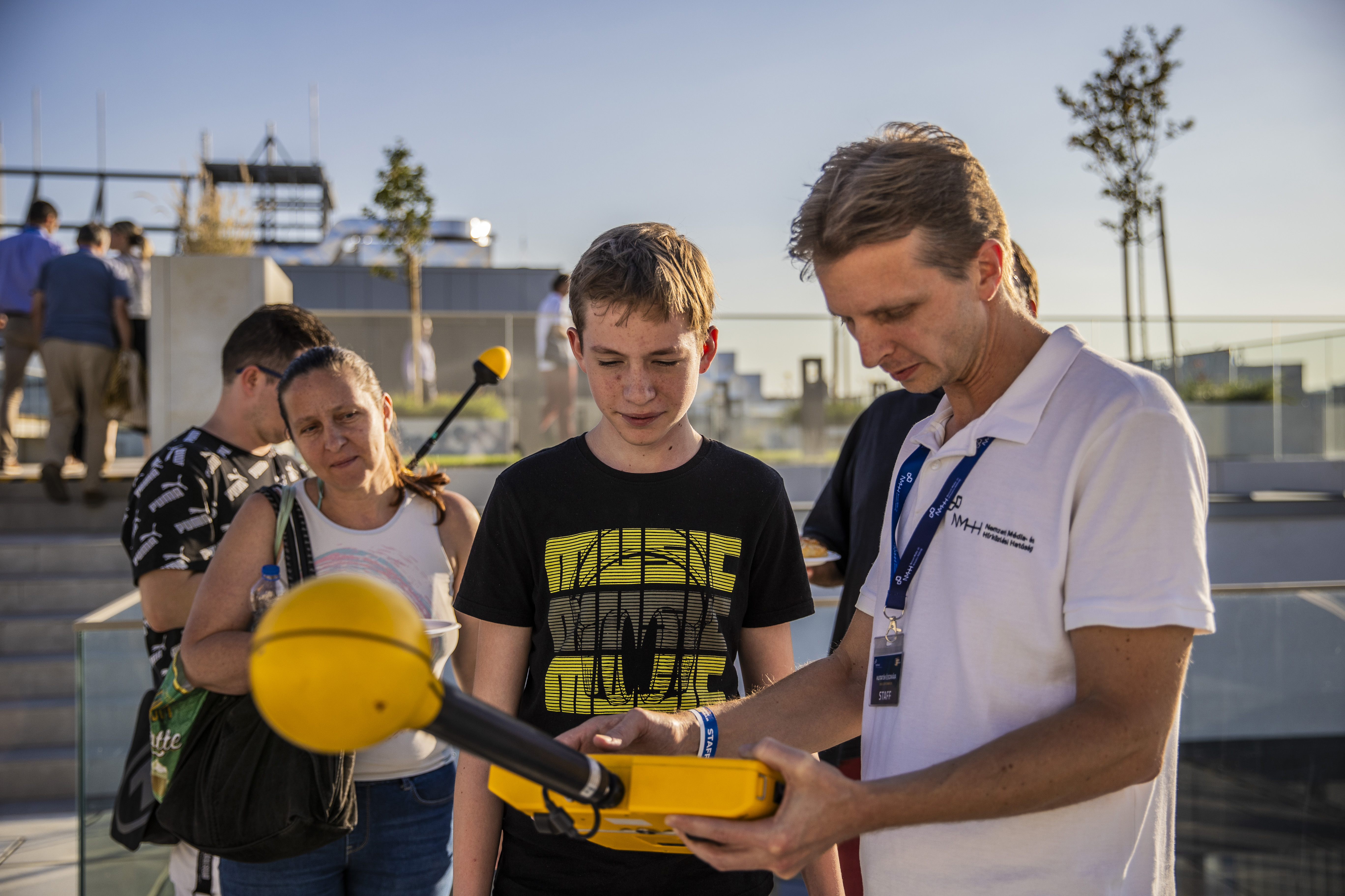 Az új komplexum egyik legizgalmasabb helyszínén a monitoringközpont munkájába lehetett bepillantani. A Rádiómonitoring Osztály munkatársai nem csak magyarázatot adtak frekvenciakoordinációs kérdésekre, de a látogatók egy rádióadó jelét is megkereshették. A zavarelhárítási játék után a program az udvaron parkoló mérőautók bemutatásával folytatódott, majd a rendezvényközpontban zárult a nap közben elhangzott információkból összeállított online kvízjátékkal.