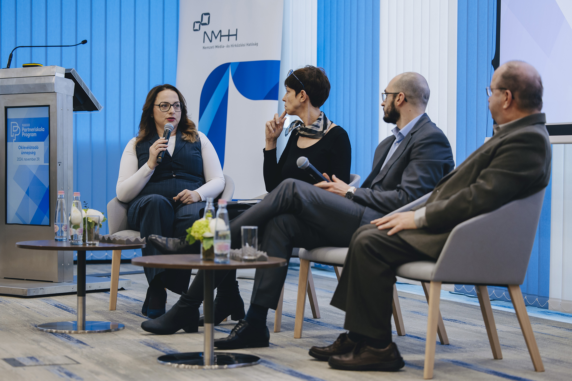 Juhászné Sebestyén Andrea arról beszélt, hogy érdemes lenne a közoktatásban nagyobb hangsúlyt fektetni a diákok médiaismereteinek, médiatudatosságának fejlesztésére. Rácz Zoltán szerint a 11-12. osztály helyett érdemesebb lenne már a 8-9. évfolyamon beszélni a témáról – egyrészt, mert a 13-14 évesek kitettebbek a digitális tér veszélyeinek, mint idősebb társaik, másrészt fogékonyabbak is ezen ismeretekre, mint a végzős középiskolások. Hangsúlyozta: nem kellene félni a kisebbek megszólításától, hiszen ők is nyitottak a téma iránt. Varga Árpád a fiatalok korai edukációjának fontosságára utalva emlékeztetett, hogy az NMHH kutatásai szerint 10 éves koruk környékén a diákok fele már rendelkezik valamilyen okoseszközzel.